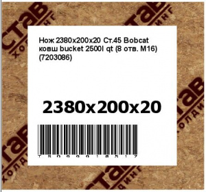 Нож 2380х200х20 Ст.45 Bobcat ковш bucket 2500l qt (8 отв. М16) (7203086)