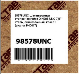 98578UNC Шестигранная стопорная гайка DIN985 UNC 7/8" сталь, оцинкованная, класс 8 (аналог K40017)
