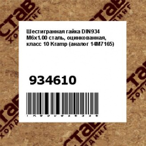 Гайка шестигранная M6x1.00 DIN934, сталь, оцинкованная, класс 8 Kramp (аналог 14M7165)